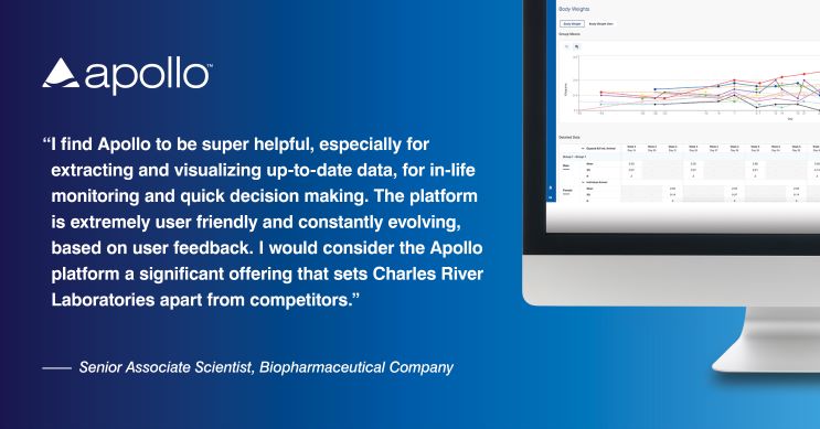 With Apollo™, you can access and share study-related information in a secure environment while unlocking a new world of speed and accessibility. Apollo is a secure platform that allows you to access real-time data and study-related documents in a centralized space. And with continuous agile development of new features and datasets, Apollo is designed to meet your evolving needs. Apollo removes barriers and empowers your toxicology program.