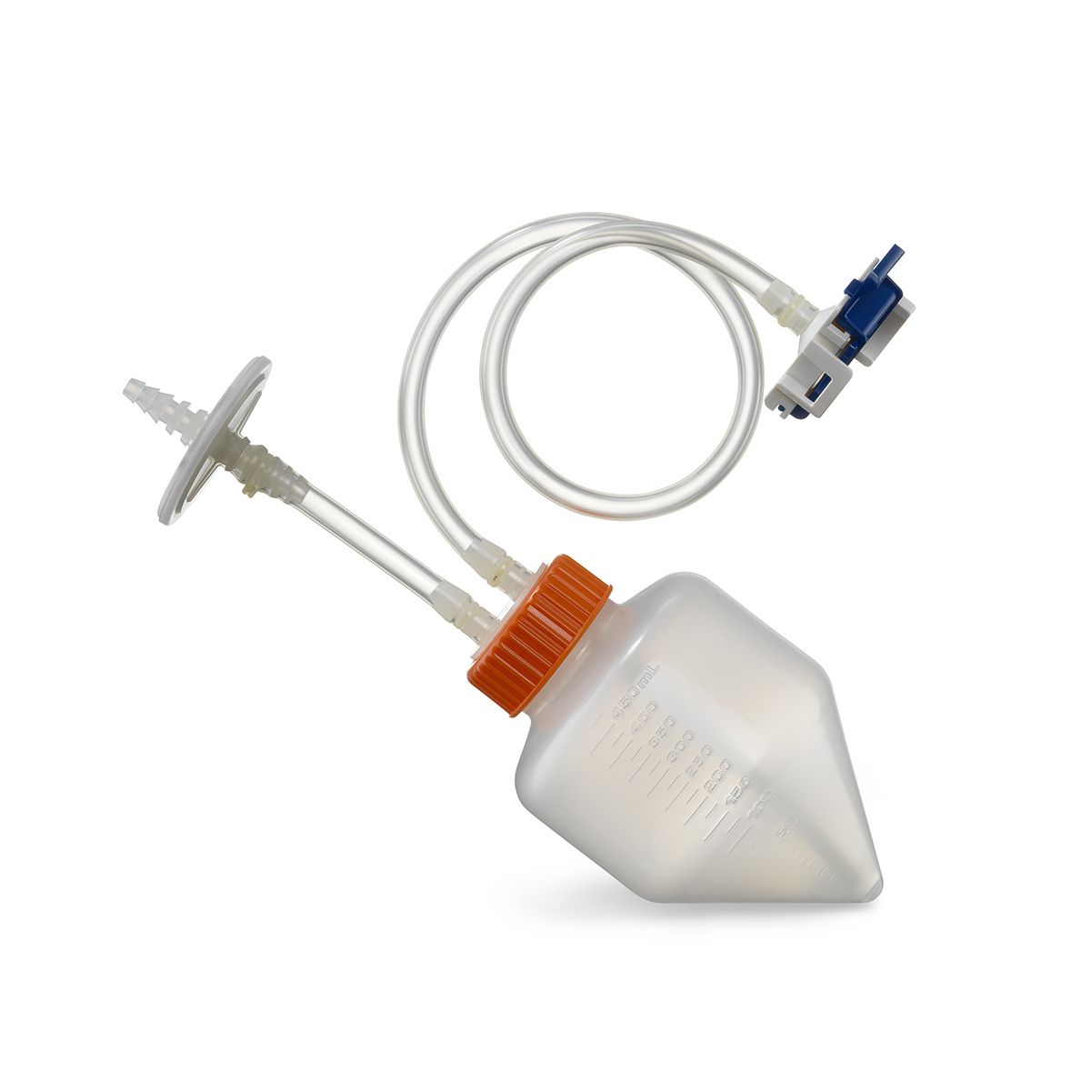 These storage bottles can be connected to the Ascent Fixed Reactor system using the pre-assembled aseptic connector. They can be used to add media, or caustic fluids such as trypsin to complete cell culture in an entirely closed solution.