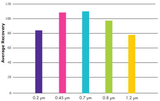 - Passage might be one reason why larger pore sizes (> 0.7 µm) showed lower recoveries than smaller pore sizes.