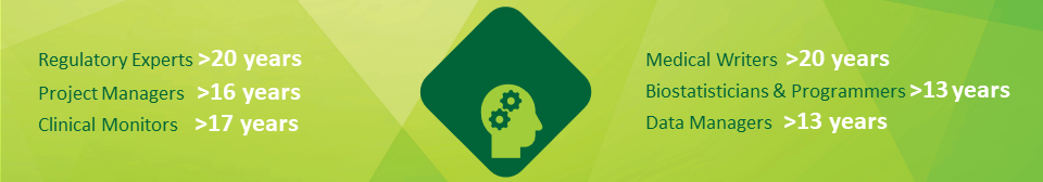 Our clinical development and regulatory submission teams are composed of highly educated experts, among whom more than 65% have advanced degrees. Specifically, our experienced members offer, on average the following industry experience: