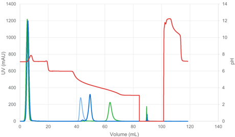 The ligand design allows for elution at a wider range of pH when compared to conventional Protein A chromatography. Allowing for a wider operational window to address aggregation concerns and increase purity clearance within the capture step.