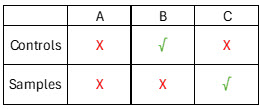 The last case would be when the Cygnus antigen control results fail specifications and the sample results pass (scenario C below); in most cases, this suggests an analyst performance issue or an equipment issue. Situations such as assay drift due to loading time can impact plate readings, and if the controls are loaded further away from the standard curve, this case is more likely due to procedural issues (for more detailed information about how to avoid procedural issues, be sure to check out our previous post on plate loading and washing).