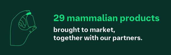Looking back at 40+ years of experience we are known for our extensive upstream, downstream and aseptic filling know-how, fast and tailored transfers, effective launch preparation and regulatory support. Our mammalian product expertise encompasses monoclonal antibodies, fusion proteins, antibody fragments, complex antibodies, enzymes, and other recombinant proteins. Totalling over 60 different biopharmaceuticals and over 80 different processes for manufacturing (pre-)clinical material.