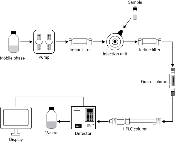 Fig 1: A typical HPLC workflow contains several opportunities for filtration.